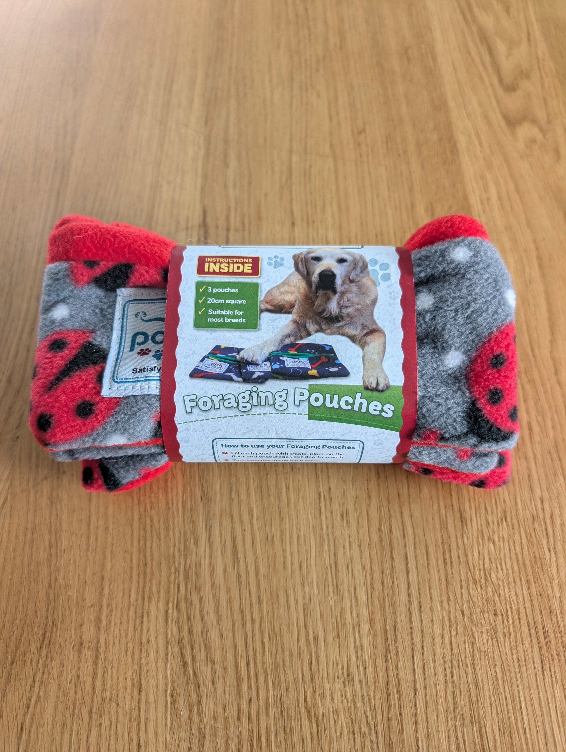 Some owners are concerned that their dog will chew the fleece, however most dogs find foraging so immensely rewarding that this instinct usually overrides their desire to bite the fabric. Please ALWAYS supervise your dog and follow the instructions for use on the packaging to minimise risk. No dog should be left alone with any of the PickPocket Forager range as ingesting fabric could lead to serious medical issues. If you have any concerns or suspect your dog has swallowed some fabric, please consult your veterinary surgeon immediately.